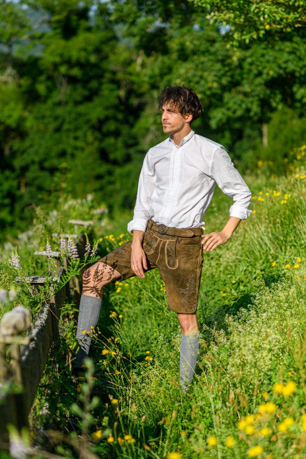 Das Dirndl ist der Fokus unserer Arbeit. Doch auch die Männerwelt kommt bei uns nicht zu kurz. Kurze Lederhosen, Trachtenjacken und hochwertige Trachtenhüte gehören ebenso zu unserem Sortiment, wie Trachtenschuhe, Trachtenhemden, Socken und typisch bayerische Styles in Übergrößen.