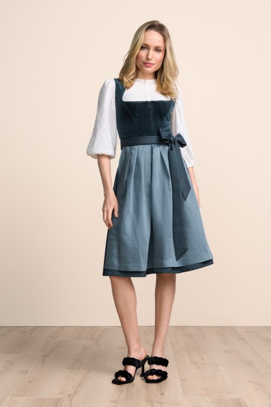 Das moderne Dirndl Lynette zieht mit seinem schlichten Design alle Blicke auf sich. Die taillierte Passform betont geschickt deine Figur, während der geradlinige Ausschnitt feminine Akzente setzt. Ein praktischer Reißverschluss vorne sorgt für einfachen Einstieg. Der 60cm lange Rock endet charmant unter dem Knie und verleiht dem Dirndl einen eleganten, stilvollen Look. Zwei praktische Eingrifftaschen im Rock bieten Platz für Kleinigkeiten. Die dezente Schürze rundet das Outfit perfekt ab. Ohne eine klassische Miederschnürung bleibt das Dirndl modern und minimalistisch. Als Teil der aktuellen COLLECTION-Kollektion wartet das Dirndl nur darauf von dir entdeckt zu werden!