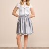 Romantisches Dirndl Yani überzeugt mit einem dezenten Herz-Ausschnitt und einer eleganten Knopfleiste. Das Dirndl glänzt in schimmerndem Stoff. Der Rock hat eine Länge von 50cm und ist somit knielang. Mit unserem Dirndl Yani aus der MADL-Kollektion bist du auf jedem Fest ein Blickfang!