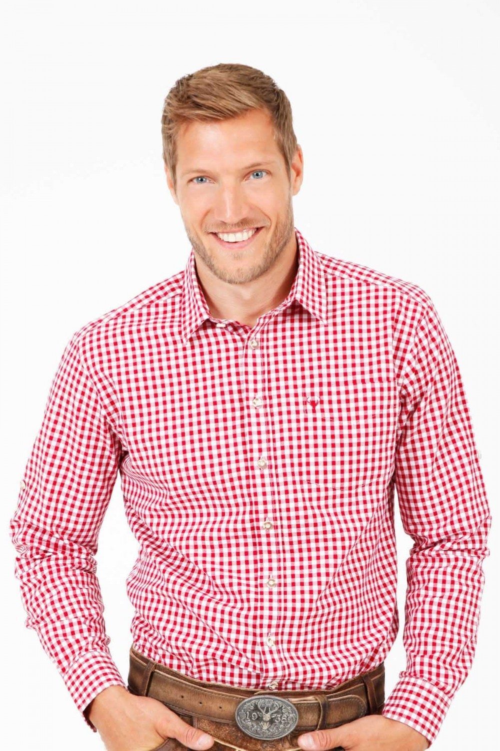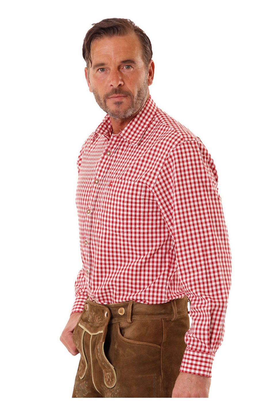 Das traditionelle rot/weiß karierte Trachtenhemd mit hochwertigen Trachtenknöpfe an den Ärmeln und auf der Vorderseite ist ein zeitloser Klassiker zur Lederhosen aber auch zu jeder anderen Kombination. Der Hirschkopf auf der Brusttasche ist ein weiteres Highlight und die Ärmel kann man hochkrempeln und an den Knöpfen befestigen.