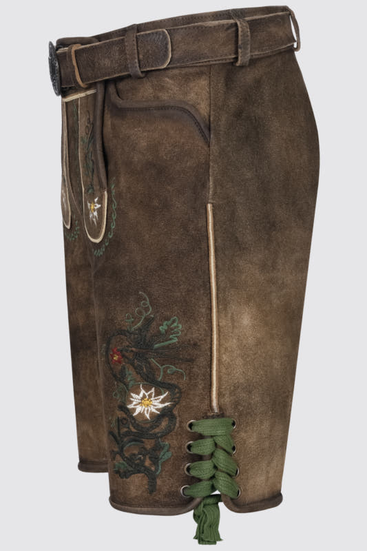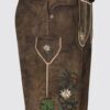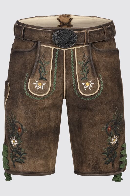 Die Lederhose Alexander überzeugt durch ihr stilvolles Design und handwerkliche Details. Aufwendige Edelweiß-Stickereien auf Hosenlatz und entlang der Hosenbeine verleihen der Hose einen traditionellen, zugleich edlen Akzent. Ein passend abgestimmter Ledergürtel rundet das Outfit harmonisch ab. Gefertigt aus hochwertigem Ziegenleder, sorgt die Lederhose für einen komfortablen Sitz und hervorragende Tragbarkeit. Mit diesem Modell kreierst du mühelos einen trendigen Look, der klassische Trachtenästhetik stilvoll interpretiert.