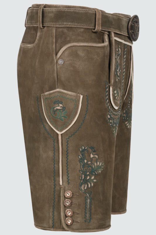 Die Lederhose Cailan mit Gürtel aus der neuesten BUAM Kollektion vereint modernen Stil mit traditionellem Charme. Die edlen Stickereien auf Hosenlatz und Hosenbeinen machen dieses Modell zu einem echten Blickfang. Mit praktischen Hosentaschen bietet die Trachtenlederhose ausreichend Platz für deine Essentials. Speziell für Herren entworfen, die Tradition und Stil verbinden möchten, ist die Lederhose Cailan das perfekte Upgrade für deine Trachtengarderobe ideal für einen Besuch auf der Wiesn oder dem Canstatter Wasen.