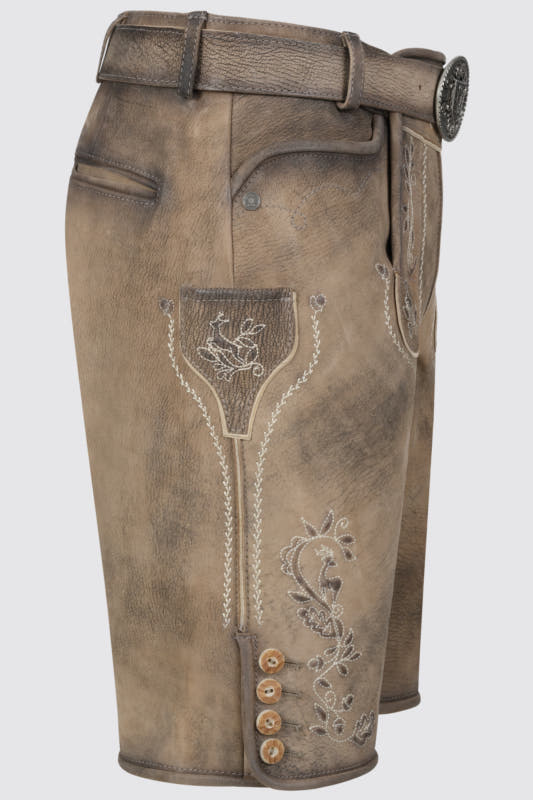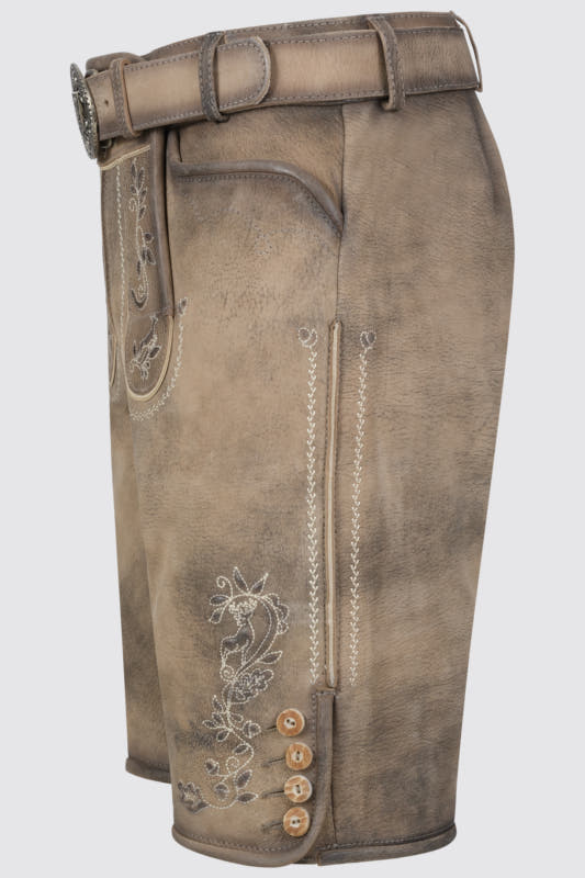 Mit der Lederhose Wincent trägst du ein echtes Statement-Piece im modernen Look. Auf den ersten Blick fallen die detailreichen Stickereien auf dem Hosenlatz und entlang der Beine ins Auge. Die seitliche Knopfleiste setzt einen authentischen Akzent und unterstreicht den handwerklichen Charakter der Hose. Der passende Gürtel ergänzt das Design harmonisch und vollendet den Look. Gefertigt aus hochwertigem Ziegenleder, bietet die Lederhose einen besonders angenehmen Tragekomfort und eine hervorragende Passform.
