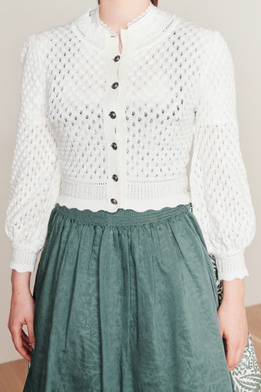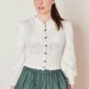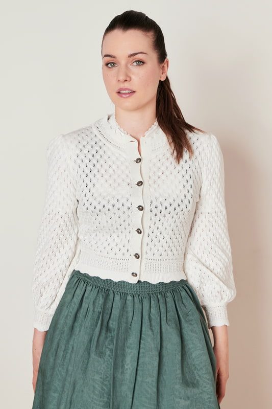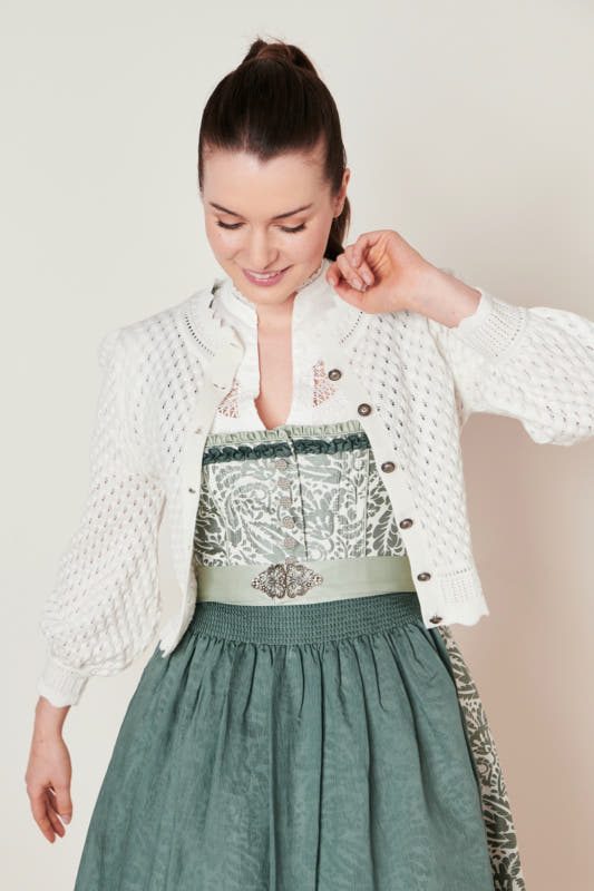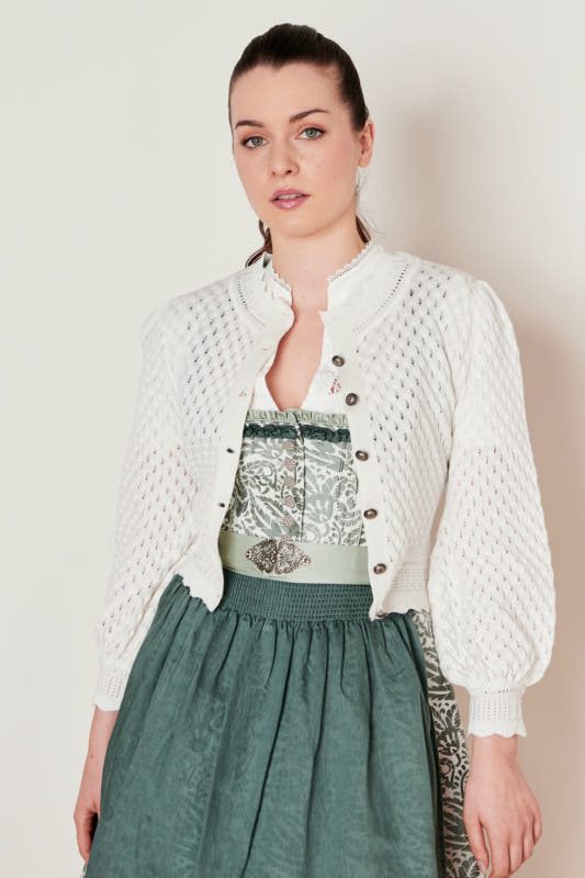 Die verspielte Strickjacke Cira- ein modischer Hingucker für jede Dame. Mit ihrem unifarbenen Muster strahlt sie schlichte Eleganz aus, die deine Garderobe aufwertet. Die langen Puffärmel sorgen für wohlige Wärme an kühleren Tagen und der feste Knopfverschluss garantiert einen optimalen Sitz. Der hohe Rundhalsausschnitt unterstreicht den traditionellen Stil und verleiht dir einen klassischen Look. Aus der neuesten COLLECTION-Kollektion, wurde diese Jacke speziell für Damen designt, die Wert auf Qualität und Stil legen. Als Teil unserer Textilgruppe bietet sie hohen Tragekomfort. Mit der Trachtenjacke Cira setzt du ein modisches Statement und zeigst deinen Sinn für klassische Mode.