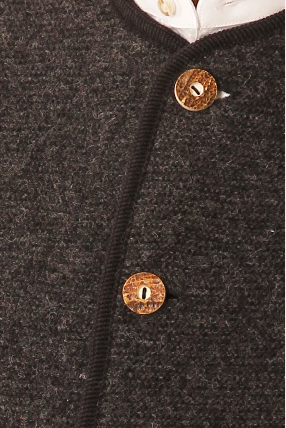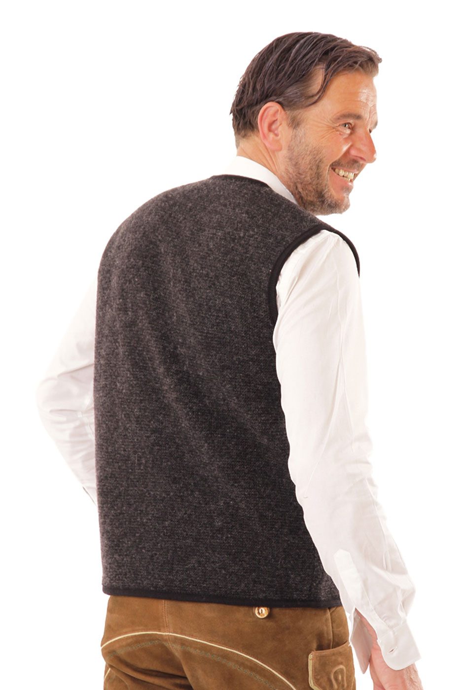 Die gerade geschnittene Herren-Strickweste in anthrazit mit Rundhals-Ausschnitt und Hornknöpfen von Daller Tracht ist ein Klassiker zu jeder Lederhose, der nicht fehlen sollte. Die angenehm wärmende Trachtenweste aus 100% Schurwolle ist ideal für die etwas kühleren Tage oder Abende.