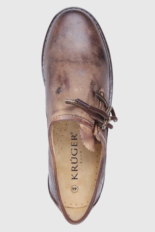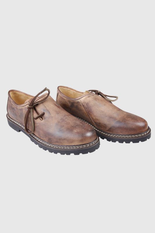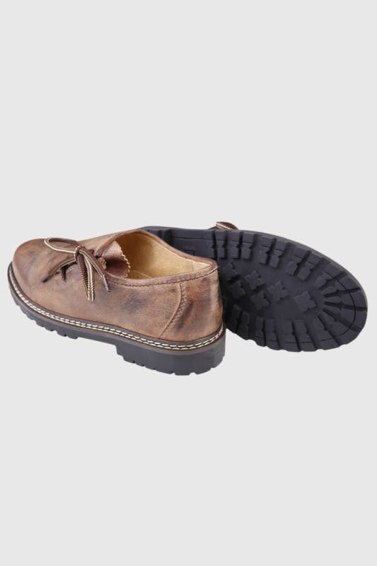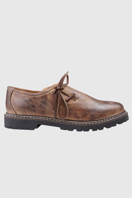Robuster Haferl in einem warmen Braun. Der Haferl wird aus hochwertigem Nubukleder gewonnen. Der modisch-traditionelle Look harmoniert hervorragend mit der Lederhose und dem Trachtenhemd.