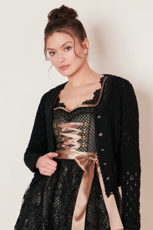 Liebliche Trachtenjacke in einem schönen Ton. Die Trachtenjacke Florentine passt perfekt zum Dirndl oder zur Lederhose. Auch im Alltag ist die leichte Strickjacke sehr vielseitig zu kombinieren.