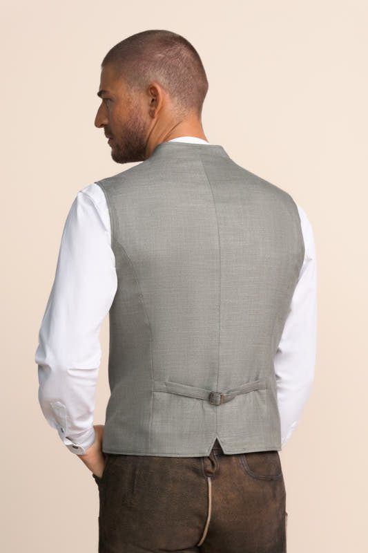 Die Trachtenweste Delian vereint klassische Eleganz mit zeitloser Vielseitigkeit und lässt sich mühelos in verschiedene Outfits integrieren. Ihr unifarbenes Design strahlt Modernität aus und macht sie zu einem echten Allrounder. Die Taschen, die zugleich praktische und stilvolle Details darstellen, bieten Platz für Essentials und setzen gleichzeitig stylische Akzente. Der Verschluss mit edlen Knöpfen, betont die klassische Ausstrahlung des Modells Delian, während der Rundhalsausschnitt die Silhouette perfekt abrundet und für einen hohen Tragekomfort sorgt.