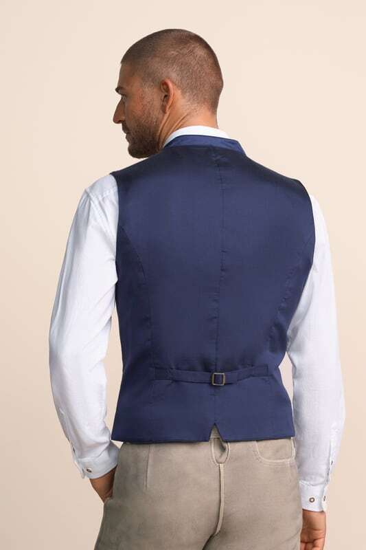 Edle Trachtenweste Petros mit stilvoller Musterung. Unsere Herrenweste besticht durch ein kunstvolles Muster, das sich elegant entlang der Weste zieht. Eine charmante Knopfleiste und das hochwertige Einstecktuch setzen geschmackvolle Akzente und machen das Gesamtbild zum Blickfang. Ideal kombiniert mit Trachtenhemd und Lederhose entsteht so ein perfekt abgestimmtes, traditionelles Outfit.